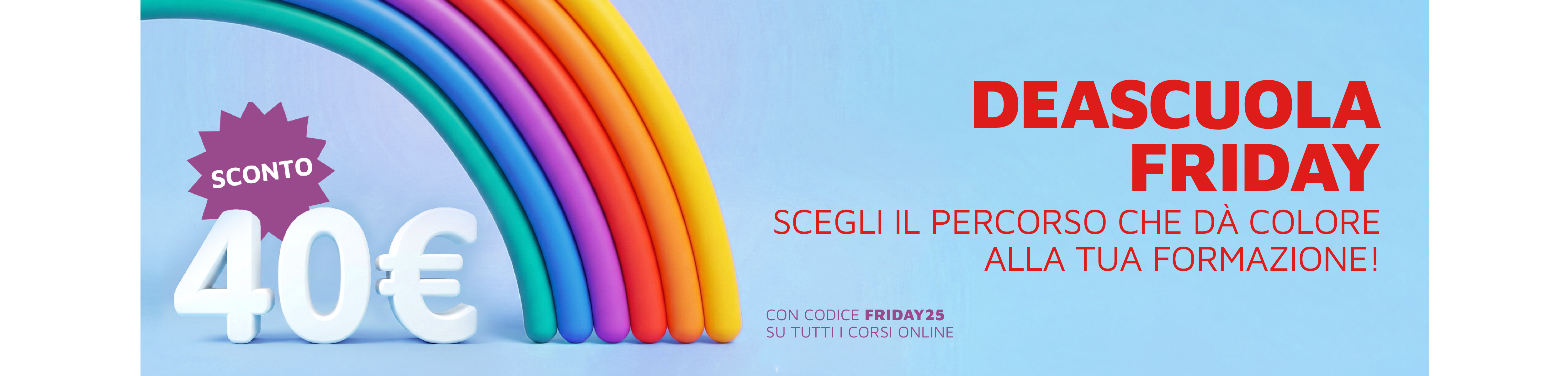 Hai tempo fino al 4 dicembre per utilizzare il codice FRIDAY25 e avere uno sconto di 40€ su un corso online a tua scelta.